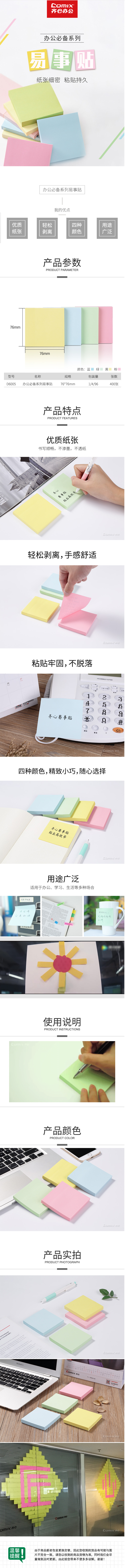 商品名称:【满49包邮】齐心 D6005 办公必备系列易事贴四色混装 3X3英寸告示贴