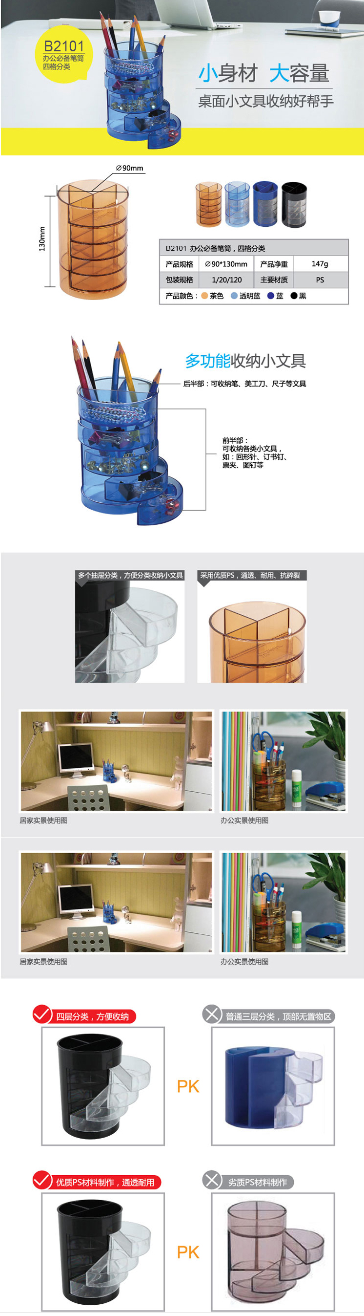 商品名称:【满49包邮】齐心 B2101 办公笔筒 四格分类