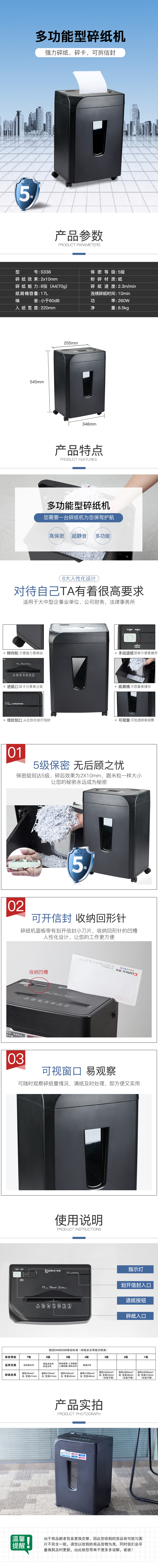 商品名称:齐心 S338 强力保密型碎纸机 2×10mm/8张纸/17L/单入口/续航10分钟