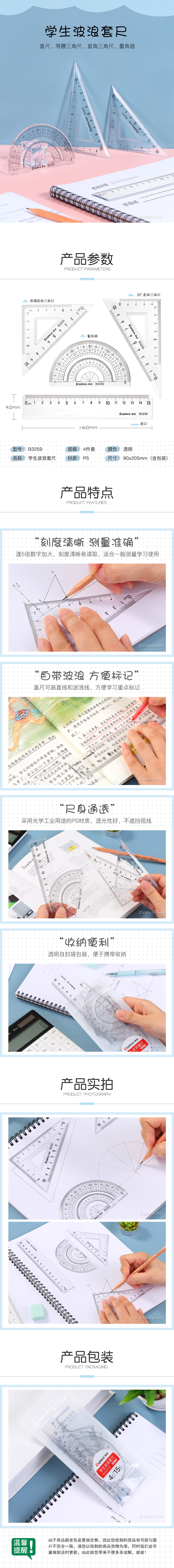 商品名称:【满49包邮】齐心 B3259 学生波浪套尺