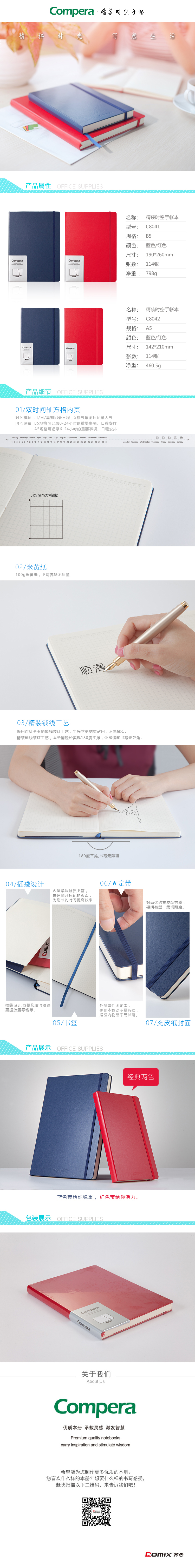 商品名称:【满49包邮】齐心 C8041 Compera 皮面笔记本 B5 114张