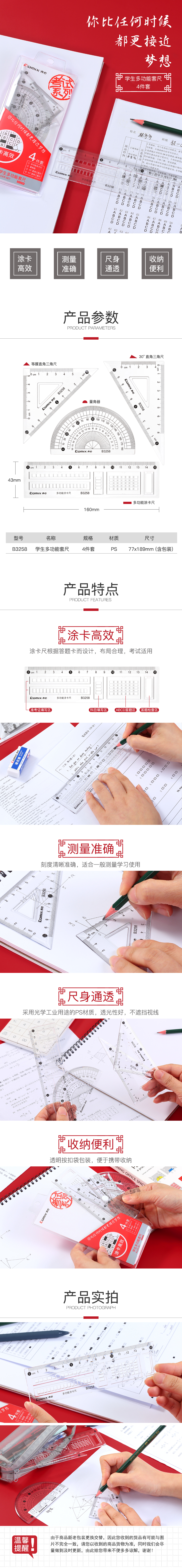 商品名称:【满49包邮】齐心 B3258 学生多功能套尺