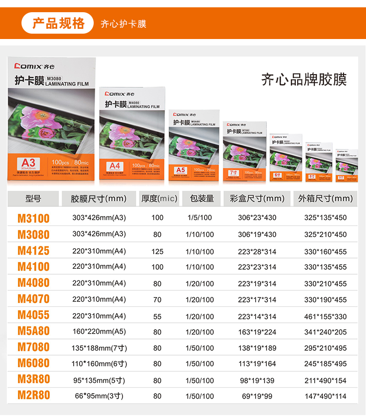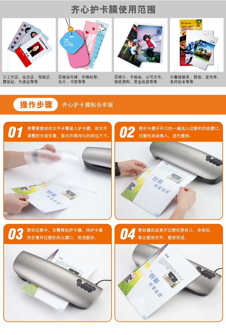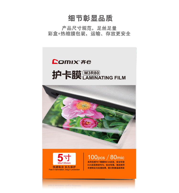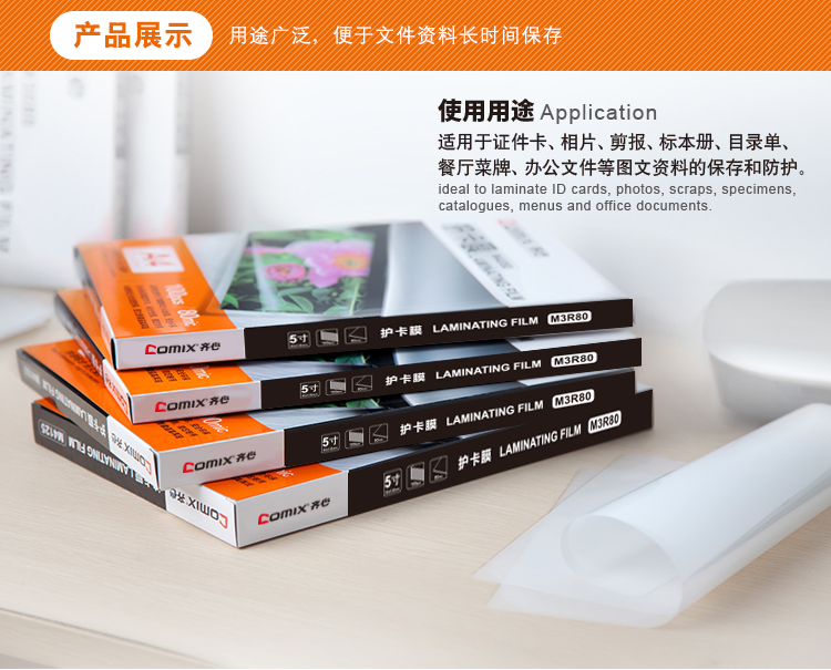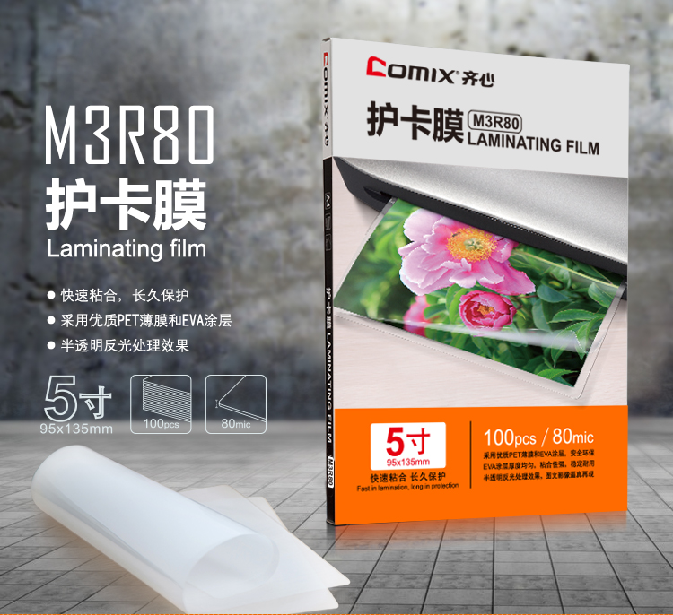 商品名称:【满49包邮】齐心 M3R80 内销透明高清护卡膜 95*135mm*80mic