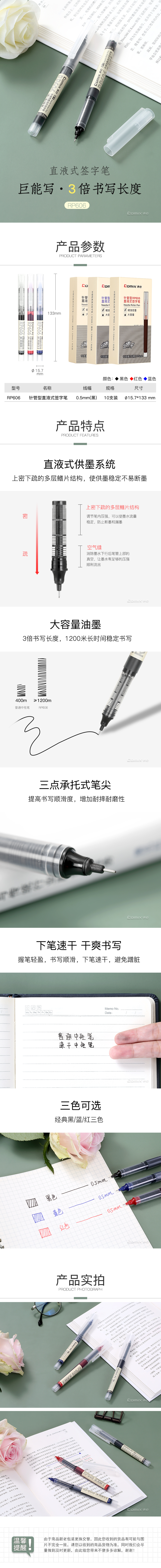 > 【满49包邮】齐心 RP606 直液式签字笔 0.5mm全针管