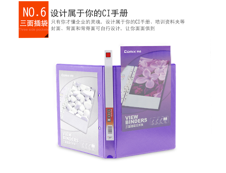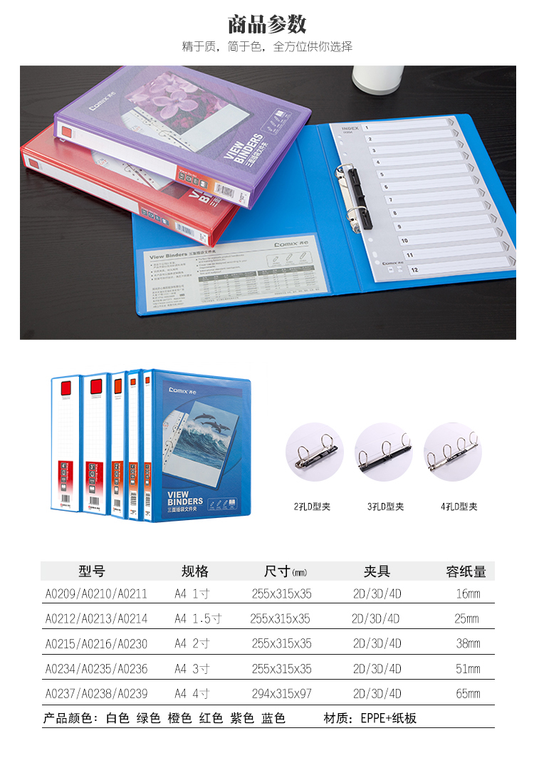 商品名称:【满49包邮】齐心 A0214 易展示 美式三面插袋文件夹 A4 1.5寸4孔D型夹