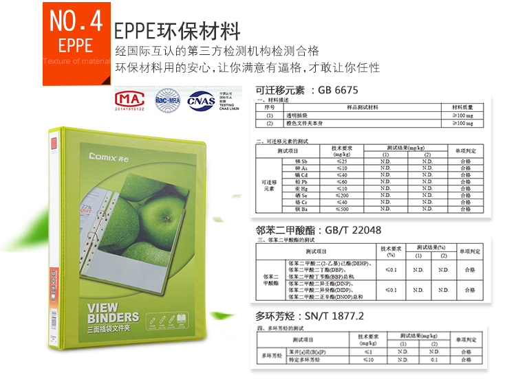 商品名称:【满49包邮】齐心 A0239 易展示 美式三面插袋文件夹 A4 4寸4孔D型夹