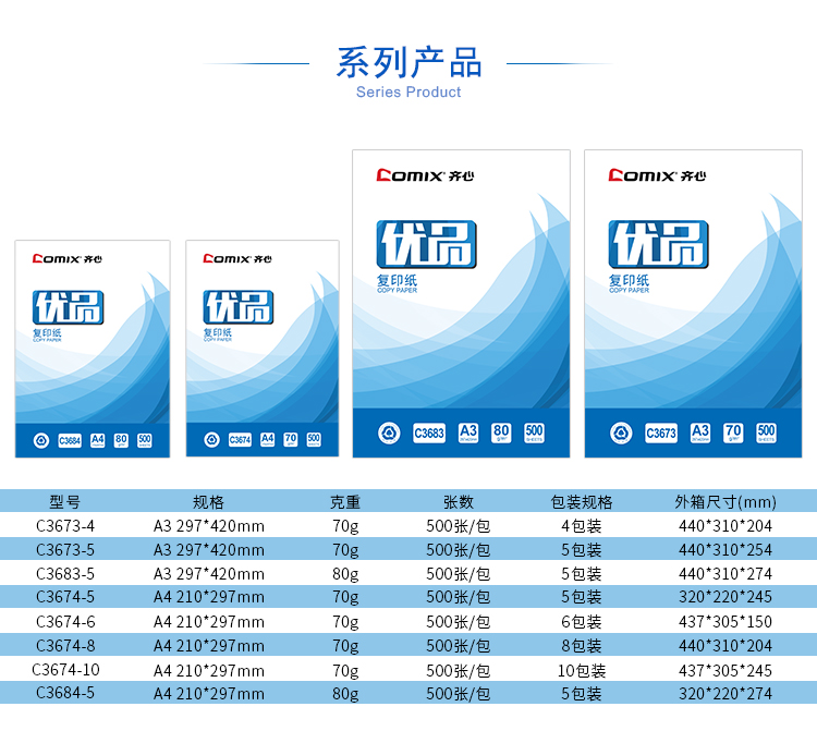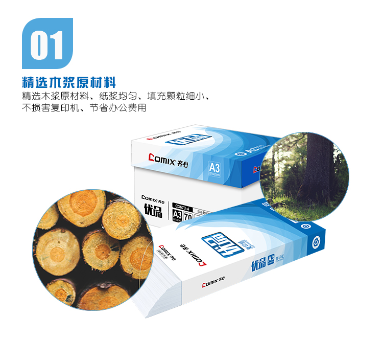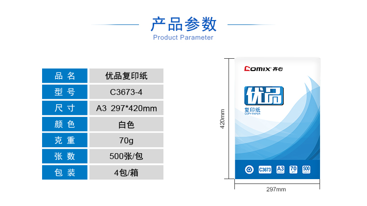 商品名称:齐心 C3673-4 优品复印纸打印纸 A3 70克