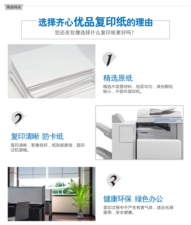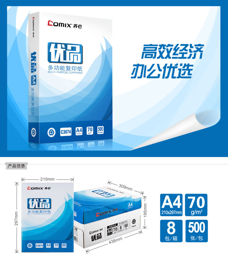 商品名称:【满49包邮】齐心 C3674-8 优品复印纸打印纸 A4 70g