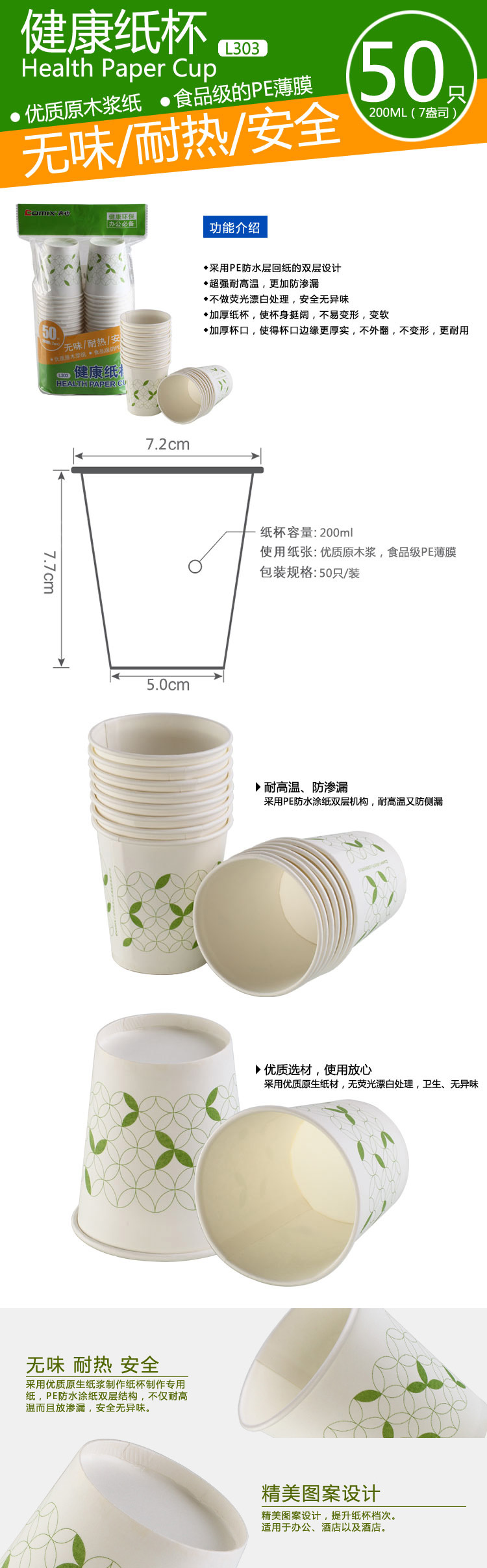 商品名称:【满49包邮】齐心 L303 健康纸杯50个装7安