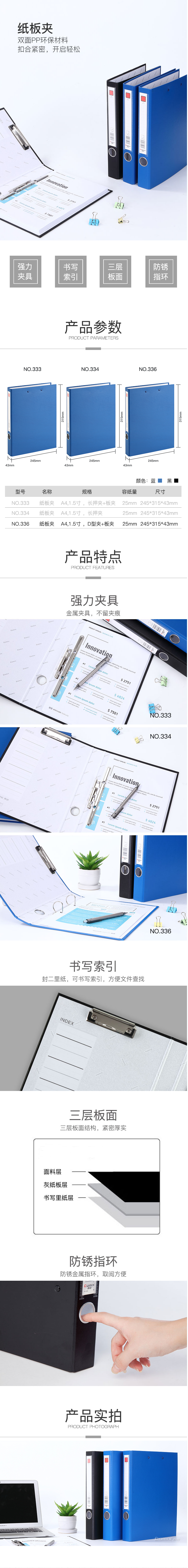 商品名称:【满49包邮】齐心 NO.336 办公必备纸板夹 A4 1.5寸 2孔D型夹+板夹
