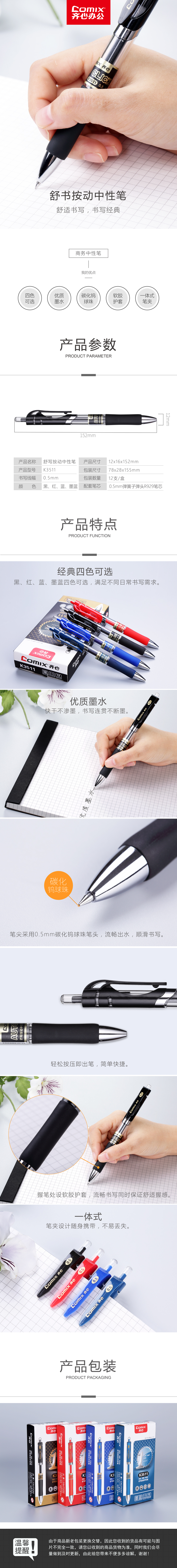 商品名称:【满49包邮】齐心 K3511 舒写按动笔中性笔 0.5mm匹配笔芯 R929