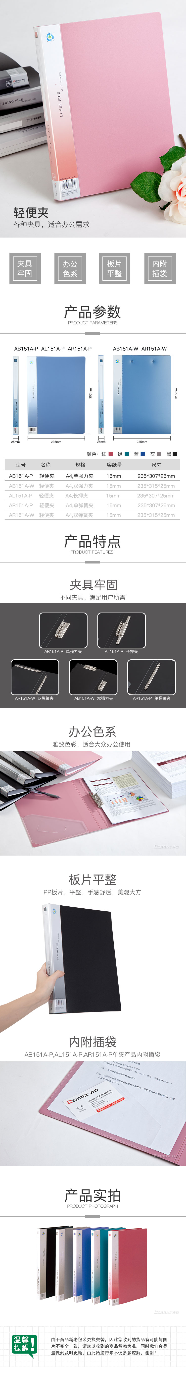 商品名称:【满49包邮】齐心 AB151A-P 超坚固轻便夹 A4 单强力夹