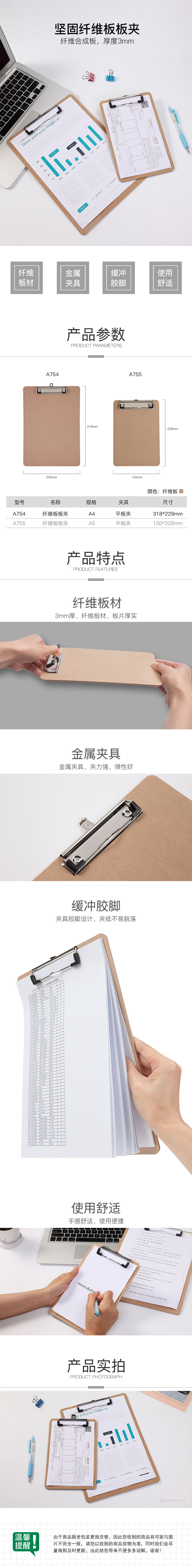 商品名称:【满49包邮】齐心 A754 本色系列 便携式纤维板夹 A4 竖式