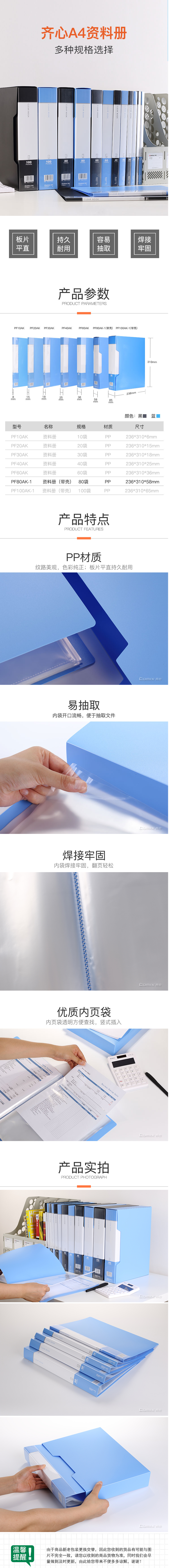 商品名称:【满49包邮】齐心 PF80AK-1 超省钱大容量资料册 A4 80袋外壳
