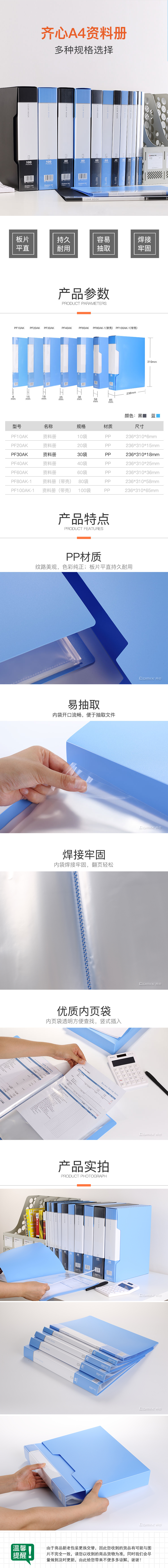 商品名称:【满49包邮】齐心 PF30AK 超省钱资料册 A4 30袋