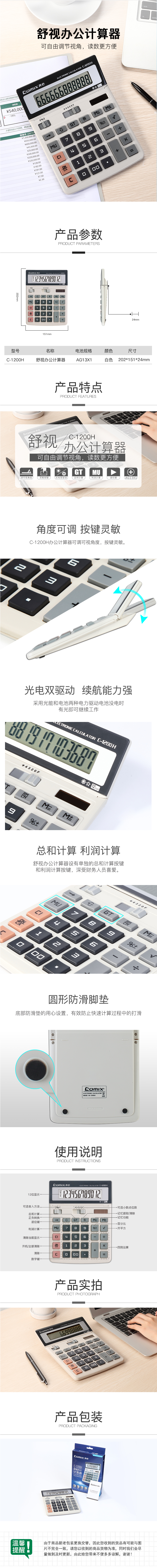 商品名称:【满49包邮】齐心 C-1200H 计算器 大台 舒视办公