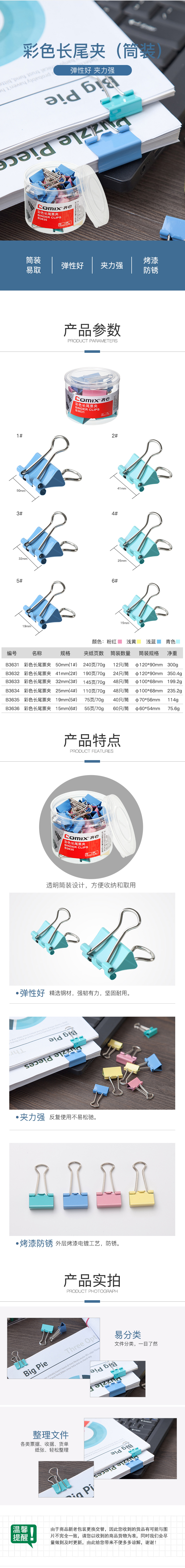 商品名称:【满49包邮】齐心 B3635长尾夹票夹 5# 19mm 40只/筒